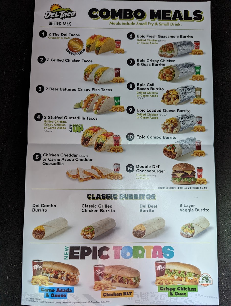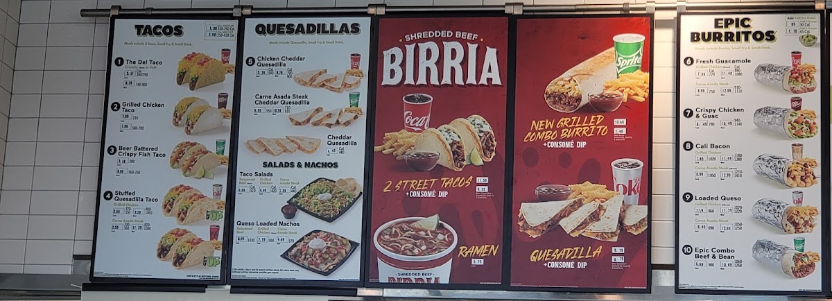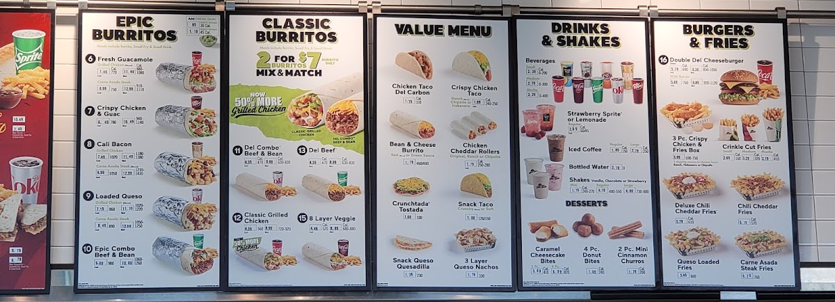 Breakfast lovers will adore the Double Cheese Breakfast Tacos, offering an irresistible combination of creamy queso, scrambled eggs, and crispy bacon or seasoned beef. For burrito enthusiasts, the Epic Loaded Queso Burrito and Epic Fresh Guacamole Burrito showcase delectable fillings like marinated chicken or carne asada steak, complemented by a luscious layering of crinkle-cut fries and pico de gallo.